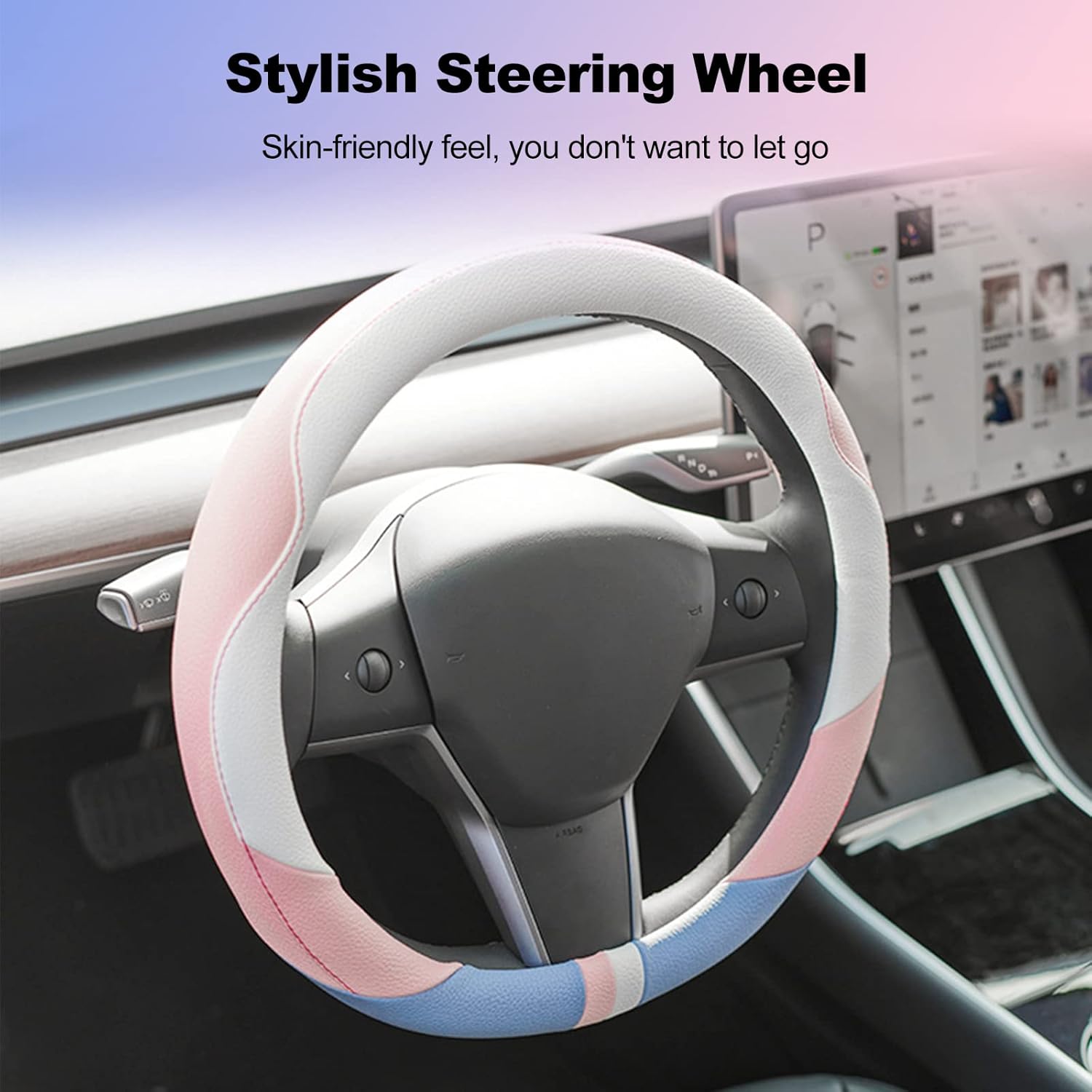 Description:Material: Suede,MicrofiberProduct Details:Suede & Microfiber Skin:The suede fabric has the characteristics of soft and non-slip, sweat-absorbing and breathable, strong grip and easy maintenance, wear-resistant and durable. The microfiber leather is non-slip, sweat-absorbing and breathable, perfect for sweaty hands.Four-layer Hot Pressing:Using four-layer hot-pressing technology, a high-quality steering wheel cover is formed by combining delicate fur, laminating film, high-elastic sponge, and rubber anti-skid inner ring.Package include:1*Car Steering Wheel Cover