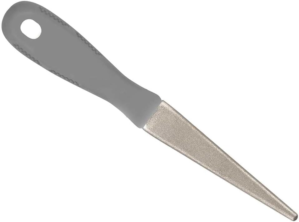 The diamond tip sharpener from Kent & Stowe is ideal for extending the life of your blades and keeping them in good condition. Used for sharpening play scissors, secateurs, knives and other small knives. Made of diamond-cut steel. Diamond sharpeners remove less steel from the blade leaving a smooth, sharp edge. With a two-sided blade that reaches all places when sharpening, one side is flat and the other is slightly rounded. Equipped with a soft handle. PTDK/S70100613