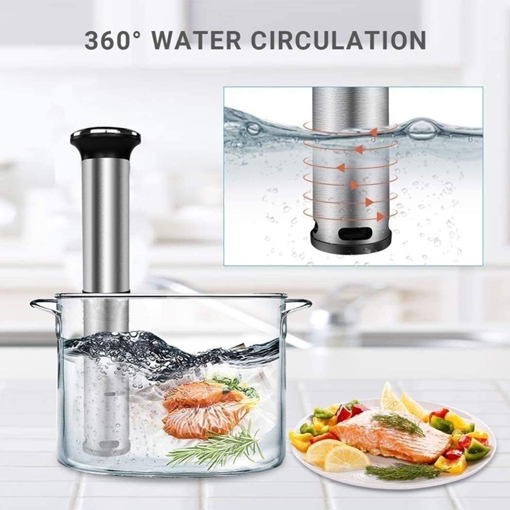 Welcome to my store, will provide you with quality service This way of cooking will create the most amazing and life changing steaks, chicken, fish, veggies, and virtually anything you toss into it. Power: 1200W Weight: 1.6kg Packing size: 43.3 * 16.2 * 9.4CM How to Use: Sous Vide circulator requires a 6-15L round,rectangular or other different container or pot.Firmly lock the product by clamping it on the side of your container. Cleaning the Sous Vide Circulator: For cleaning the heating coil,pump shaft,and sensors,use dish soap,soft booth brush and rinse under water.Do not rinse the top part of trhe circulator including the main body in water. SERVICE POLICY : We will take care of every customers problem. If you have any questions, please do not hesitate to contact us. We will reply within 24 hours. wish you a happy life!