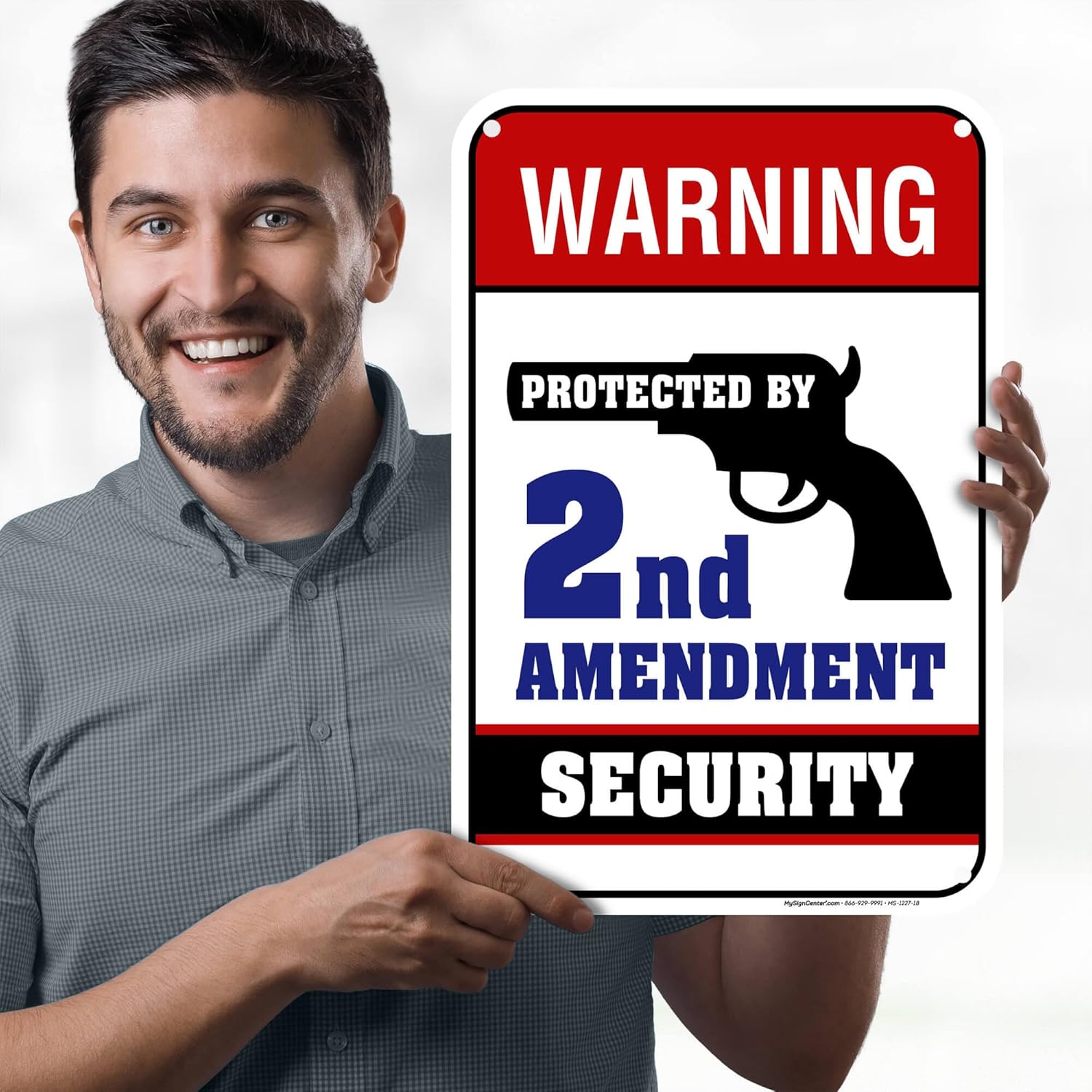 Warning Protected By 2nd Amendment Security Sign, 12"x18" Polyethylene, Indoor/Outdoor Use, USA MADE By My Sign Center